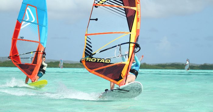Bonaire offers the opportunity for people of all ages to enjoy windsurfing: you will see young children learning to hook in and blast around on their own, local kids learning freestyle or taking up slalom on a mixture of incredibly dated, incredibly worn out equipment , and also holding down more modern, huge fully cammed sails. Then at the other end of the spectrum older sailors in their 70’s and beyond are on the water every day loving it. You can frequently enjoy watching an American couple, both in their 70’s, enjoying sailing together across the bay, practising duck gybes, carving 360’s and other graceful manoeuvres. You will also see the achievements of men and women of all ages who, maybe for confidence reasons or low personal strength and/or stamina, never imagined they would be able to learn our sport.