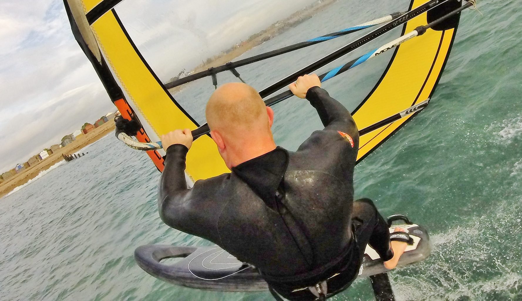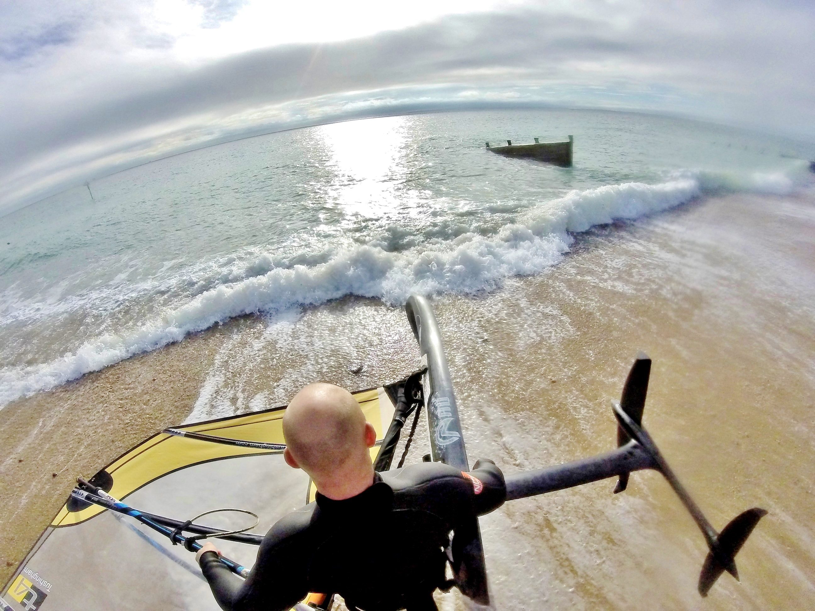 Following on rapid progress was made. We’re certainly no foiling experts but longer runs were being had all the time. Unfortunately the wind continued to pick up and soon we had way too much sail for the conditions and therefore too much lift. Time to head back to the beach and take stock.