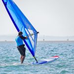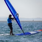 The first thing to appreciate is the One Design rig isn’t like fully batten sails we currently use. It’s very much a more bagged out affair and without full battens takes a bit of getting used to (if you haven’t used one before). Its boom is also quite long although due to its full belly the sail powers up quickly and makes use of gusts in the lightest of winds. This transfers directly to forward board momentum.