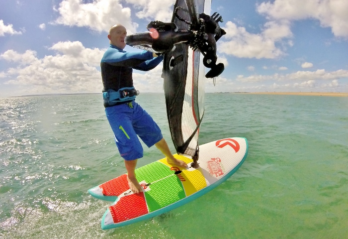 Being honest it took us a while to get familiar with. Conditions DO play a massive part when learning. Gusty winds and choppy sea states don’t do anything to help the cause. At the very beginning it’s advisable to actually have some wind in the mix (12 ish knots steady side shore breeze being ideal). Trying to learn the ropes in uber light airs (sub 10 knots) is actually quite technical and for a while we were flummoxed. Fast forward a few sessions and things began to click and before long we could claim success.
