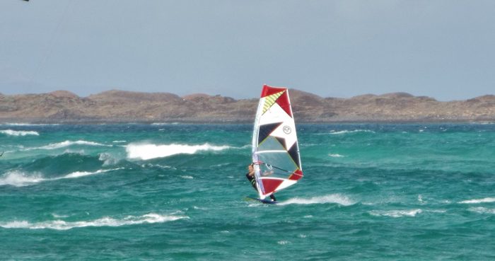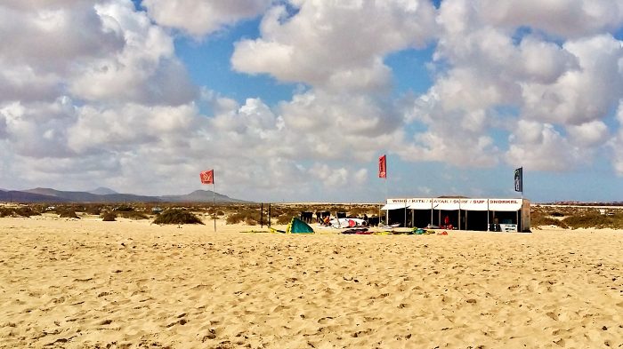 But back to the sailing… After trudging 150m from roadside parking riders will get a clearer picture of conditions. Gazing seaward, over the brow of undulating sand dunes, turquoise blue water stretches off towards Lobos. If you’ve timed it correctly then wind will puffing left to right with flashes of sail and kit colour dancing in the sunlight.