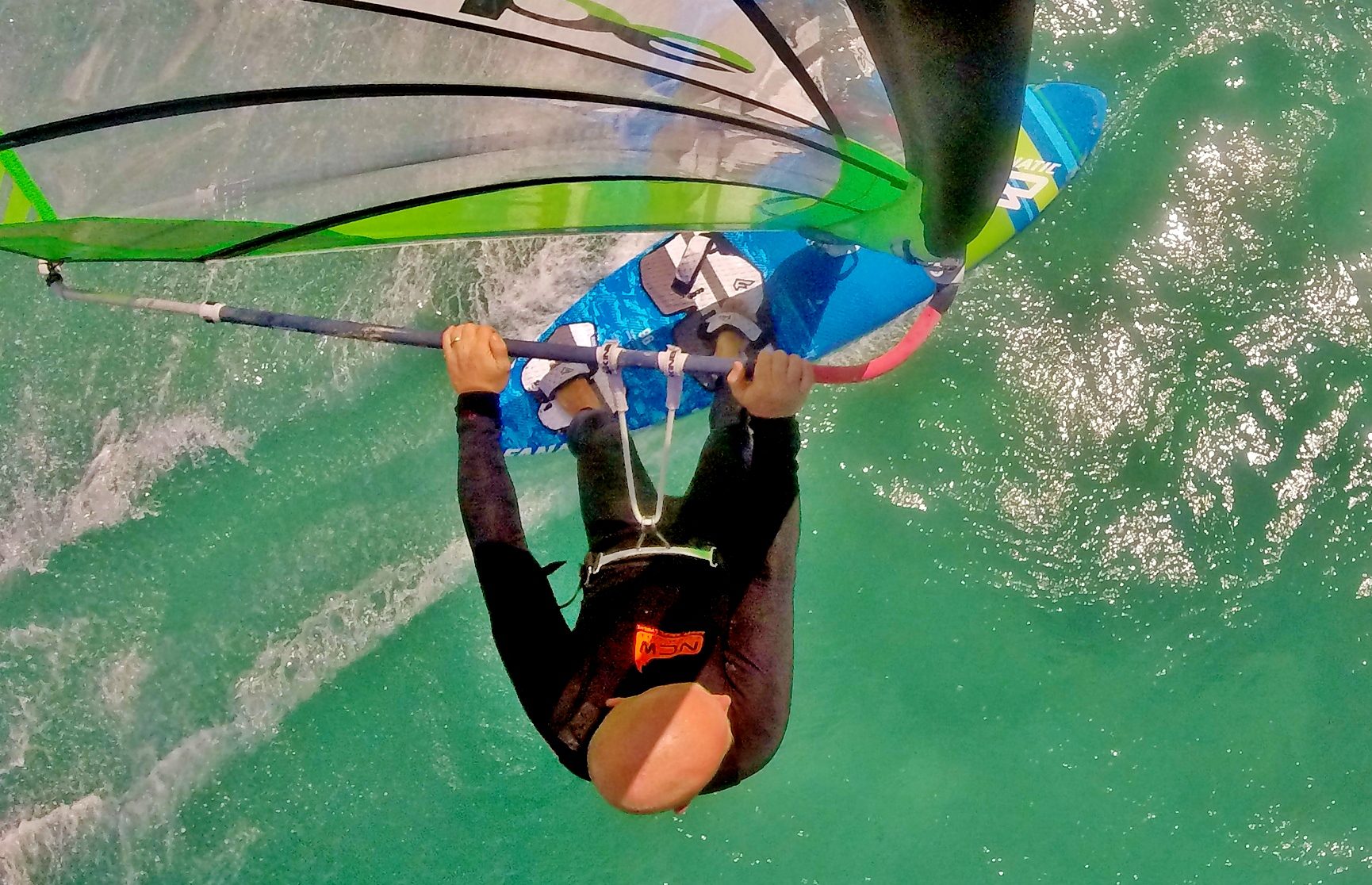 Heading towards the beach there’s a beautiful flat zone that seems to benefit from funnelling breeze. For those into aerial contortionism (read freestyle) this is your spot. Alternatively crank a gybe and head back out for another run.